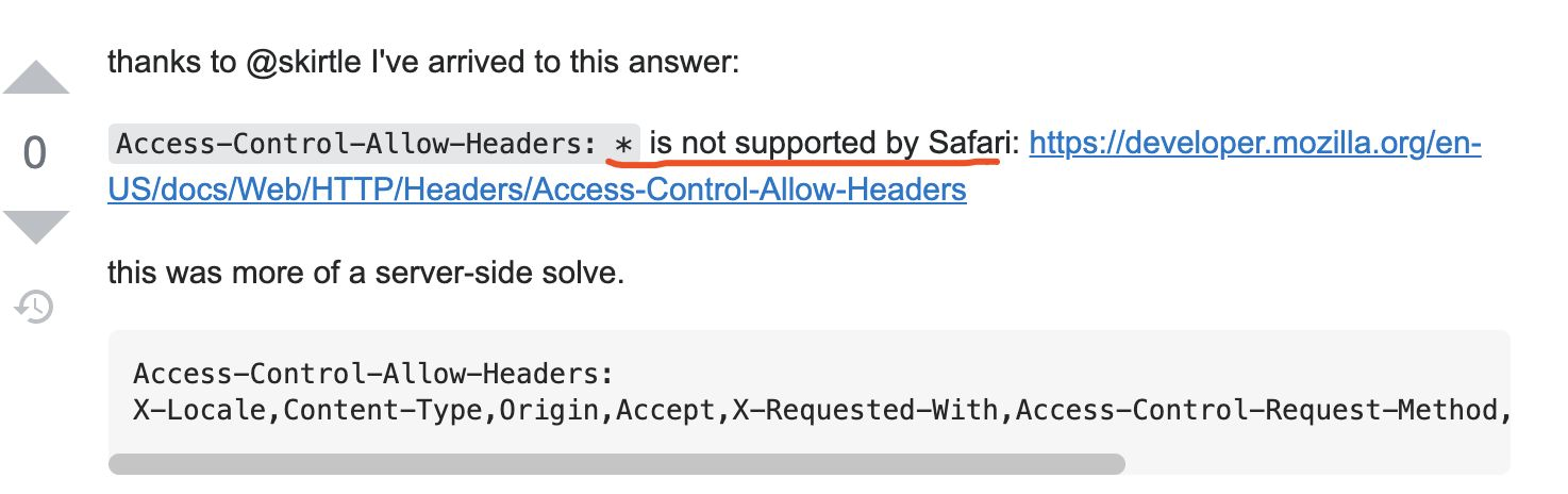 解决办法就是服务端 设置 :Access-Control-Allow-Headers: Content-Type 单独写好不要用星号。