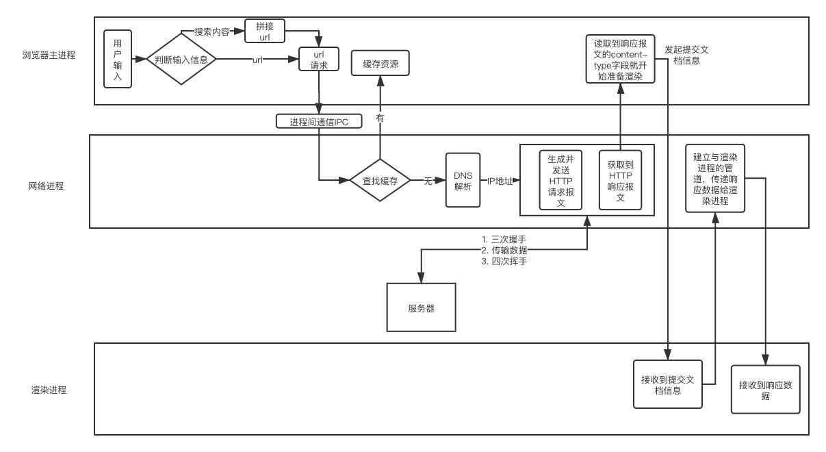 我们输入域名并不是真正的IP地址,也就是资源存储在互联网的具体位置。要知道这个域名背后指向的IP地址是多少,然后按照此IP进行寻址,找到服务器并通过www服务获取所需要的资源。从图上看就是DNS查询过程,这里省略了DNS查询过程的细节,有兴趣的同学可以去计算机网络课本中了解具体的流程。简单地说这一过程就是通过输入你的URL地址去DNS服务器查询到当前域名的IP地址。