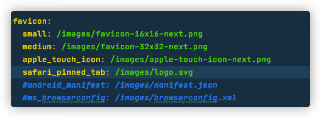 在主题目录下_config.yml文件查询 favicon,只需要修改前两个:small和medium,图片的像素得为16像素和32像素,图标下载我是在iconFont中进行查找的,大家可以根据自己的喜好进行选择下载。